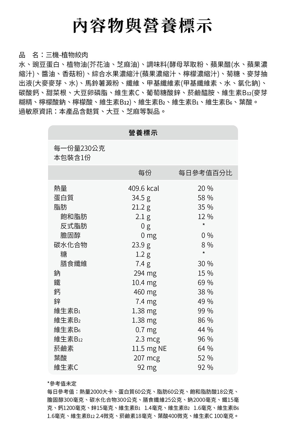 過敏原資訊:本產品含麩質、大豆、芝麻等製品。